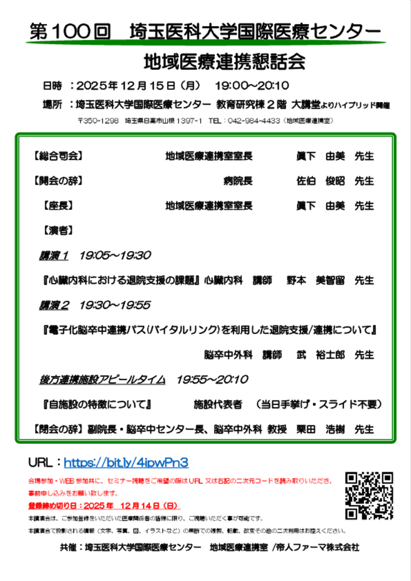 祝・脳血管内治療科、武裕士郎講師の「薬理的老化細胞除去が脳動脈瘤破裂に与える影響についての研究」が2025年度の日高研究プロジェクトに採択され、研究費を得ました。